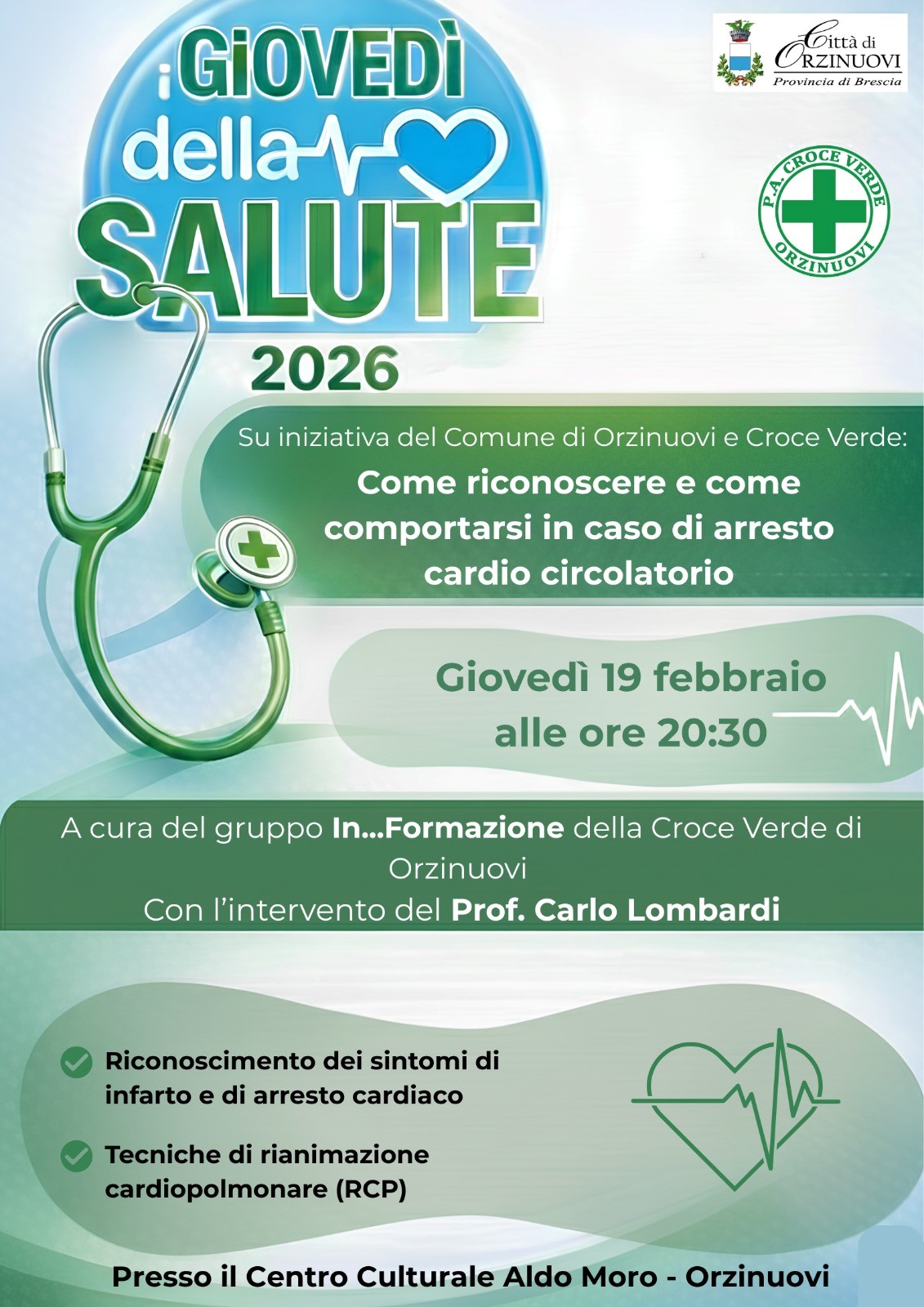 Giovedì 19 Febbraio ore 20.30 - presso Centro Culturale Aldo Moro Orzinuovi "I Giovedì della salute"